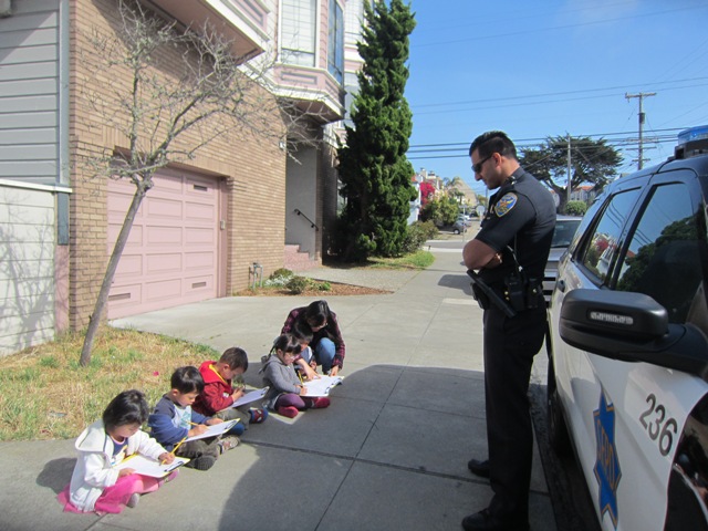 On 04/29/16 Sergeant Mannix and School Resources Officer (SRO), Officer Johal visited Little Footprints Preschool. Sergeant Mannix and Officer Johal met with the teachers and preschoolers where they explained about their jobs as police officers, various ways children can stay safe and included a small field trip to explore the inside of a police vehicle. The preschoolers were delighted with the opportunity and spent some time drawing pictures of the officers and of the vehicle while they were outside.